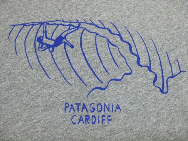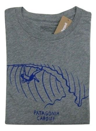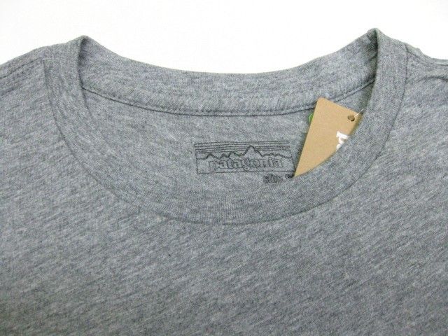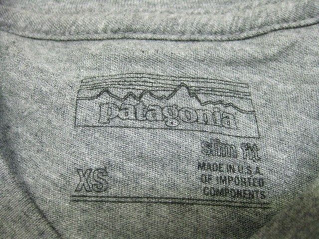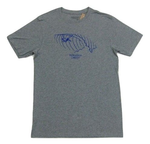 PatagoniaのM's Hang Lips LW Cotton T-Shirt By-Cradiffです。 サイズの表示はXSです。実寸は肩幅42cm 身幅45.5cm 袖丈20.5cm 着丈66.5cmです。色はGravel Heatherです。素材はオーガニックコットン100% Made in USAです。新品、未使用です。カルフォルニアのCardiff店限定です。