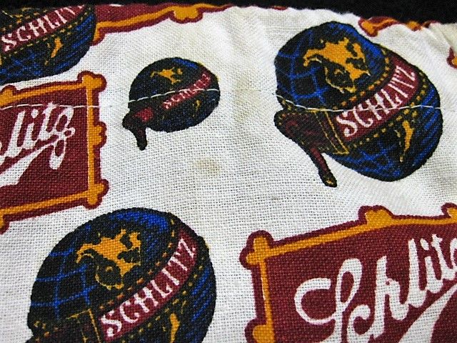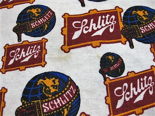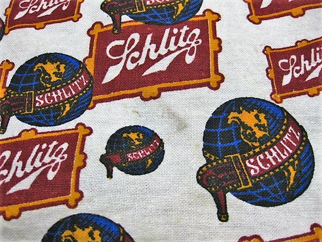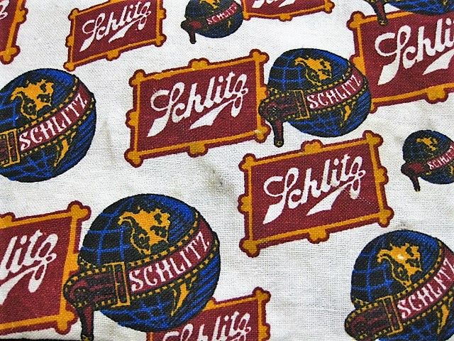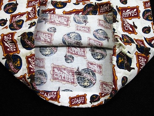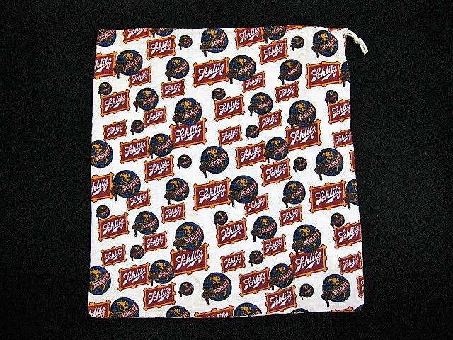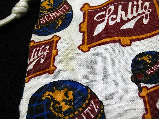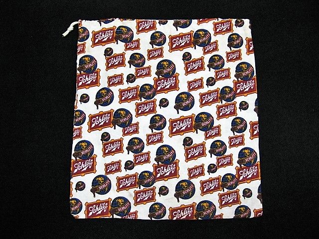 80年代のSchlitz Beer柄 巾着袋です。サイズは横幅44cm 縦幅48cmです。素材はCottonが混じったと思われるホップサック地です。多少汚れとシミがございます。生地にダメージはございません。大きさはバイクのヘルメットが入るくらいのサイズ感です。普段持って歩くのにもちょうど良いサイズだと思います。