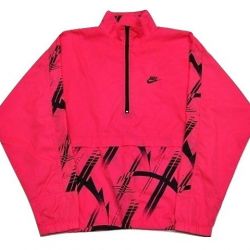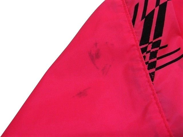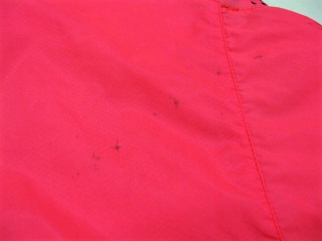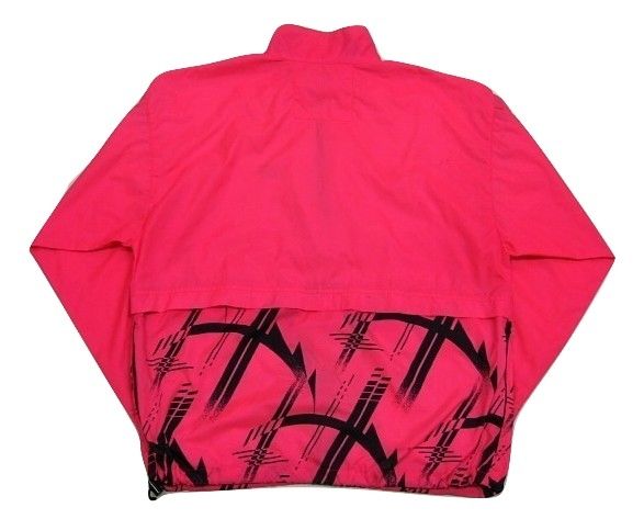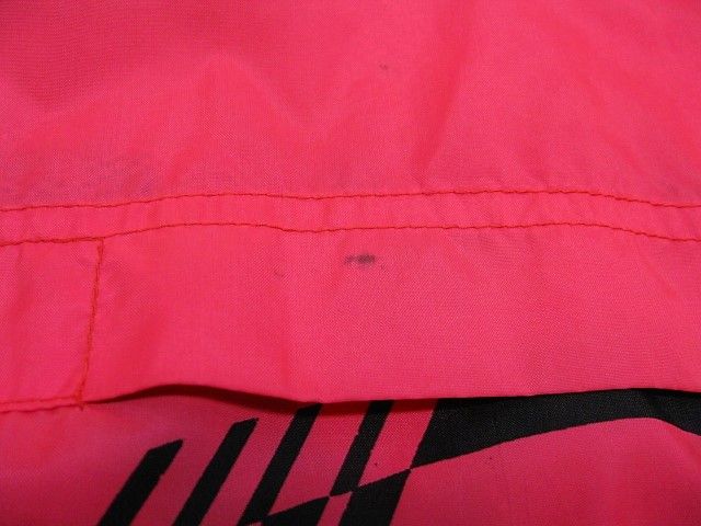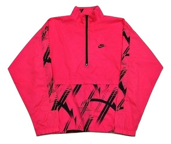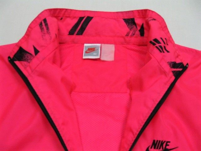 90年代のNIKE ナイロン プルオーバージャケットです。サイズ表示はMです。実寸は肩幅57cm 身幅59cm 袖丈59cm 着丈64.5cmです。素材は100%Nylonです。色はピンク×黒です。全体的に着用感がございます。両肘付近と背面に汚れが所々に見られます。背面裾付近にスレが見られます。両サイドにはハンドポケットが施されており左裾にはドローコードが施されております。内側のライナーにナイロンメッシュ生地がついており背面はベンチレーションが施されております。90年代らしいカラーリングです。