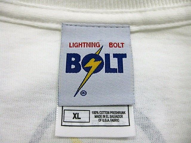 00年代のLIGHTNING BOLT Tシャツ デットストックです。サイズ表示はXLです。実寸は肩幅58cm 身幅58.5cm 袖丈25cm 着丈77cmです。汚れやダメージなどはございません。未使用のデットストック ステッカー付です。