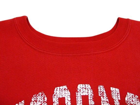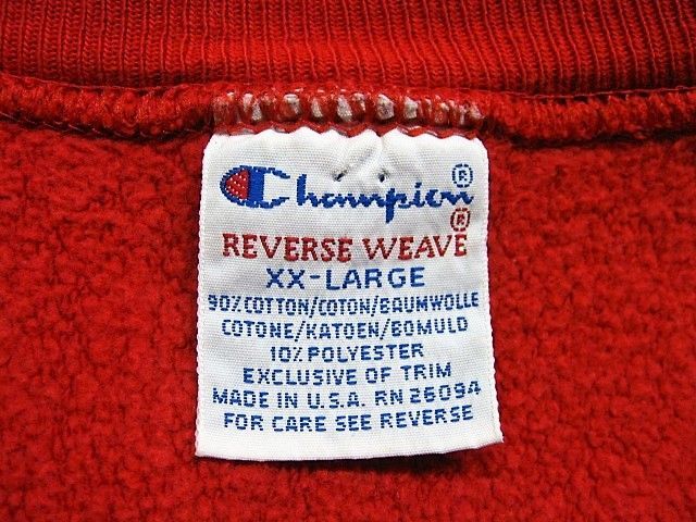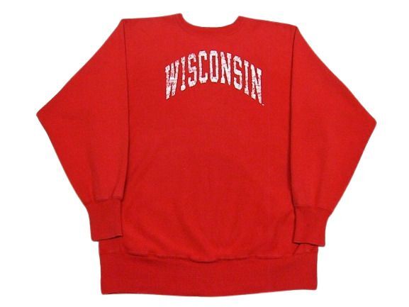 90年代のチャンピオン リバースウィーブ 刺繍タグ Wisconsin Badgersです。サイズ表示はXXLです。実寸は肩幅55cm 身幅64.5cm 袖丈67cm 着丈76cmです。全体的に着用感と色褪せが見られます。袖リブにシミと色褪せが見られます。生地はしっかりした状態です。ダメージはございません。XXLのビッグサイズです。
