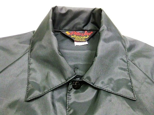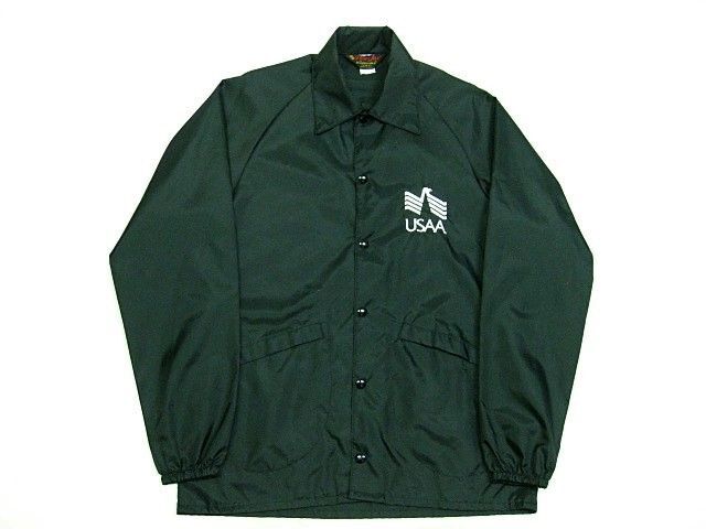 80年代のPla-Jac USAA ナイロン コーチジャケット ブラックカラーです。サイズ表示はMです。実寸は身幅58cm 袖丈(脇下~)54cm 着丈76cmです。素材はナイロン100%です。着用感もなく汚れやダメージなどはございません。ライナーは付きません。ナイロン生地一枚仕立てです。USAAはアメリカのミリタリー関係者専用の金融、保険会社です。