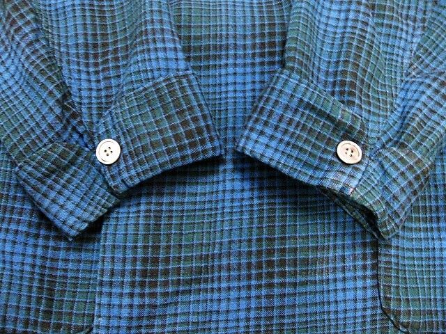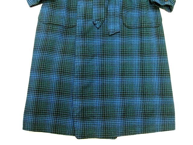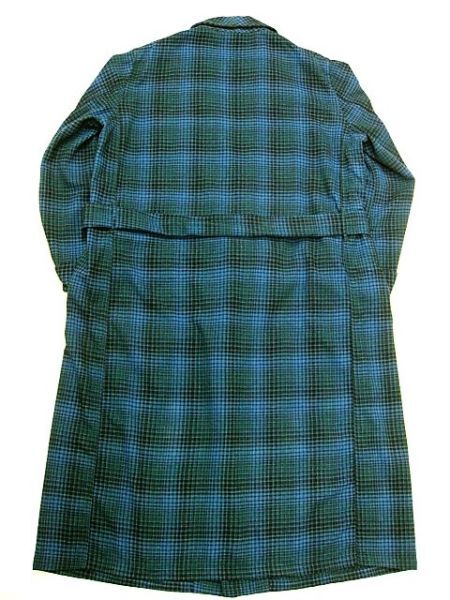 50~60年代のPENDLETON チェック柄 ウールガウンです。実寸は肩幅48cm 身幅65.5cm 袖丈62cm 着丈123cmです。おおよそL位のサイズです。全体的に着用感と色褪せが見られます。ウール生地はしっかりした状態です。汚れやシミ、ダメージなどはございません。ブルーベースにブラック × グリーンの好配色です。色々なコーディネートに使えます。