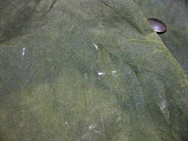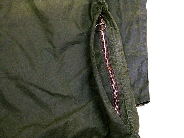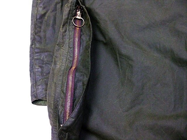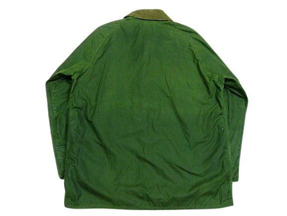80年代のBARBOUR Beaufort オイルドジャケットです。サイズ表示は44です。実寸は身幅67cm 着丈79cm 袖丈(脇下~)53.5cmです。全体的に着用感と色褪せが見られます。右肘に汚れが見られます。両サイドともに生地はしっかりした状態です。ダメージはございません。すべてのジッパーは良好です。べたつきやオイルの嫌な臭いもございません。80年代の2ワラントです。