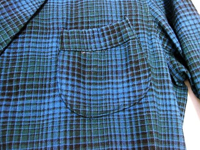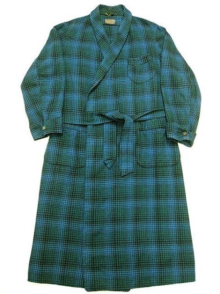 50~60年代のPENDLETON チェック柄 ウールガウンです。実寸は肩幅48cm 身幅65.5cm 袖丈62cm 着丈123cmです。おおよそL位のサイズです。全体的に着用感と色褪せが見られます。ウール生地はしっかりした状態です。汚れやシミ、ダメージなどはございません。ブルーベースにブラック × グリーンの好配色です。色々なコーディネートに使えます。