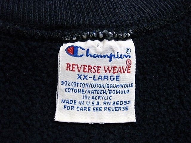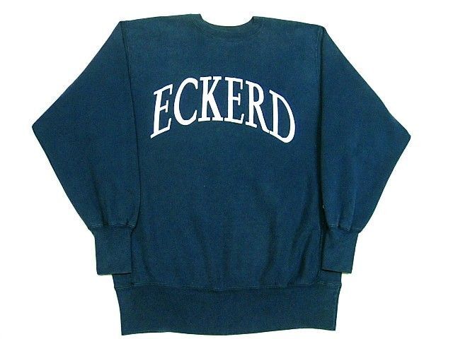 90年代のチャンピオン リバースウィーブ 刺繍タグ ECKERD Collegeです。サイズ表示はXXLです。実寸は肩幅53cm 身幅63.5cm 袖丈67cm 着丈77.5cmです。色はネイビーです。全体的に着用感と色褪せが見られます。生地はしっかりした状態です。汚れやダメージなどはございません。XXLのビッグサイズです。
