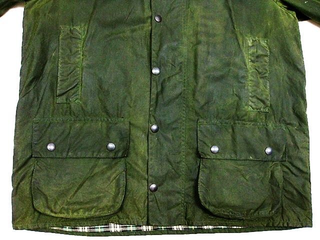80年代のBARBOUR Beaufort オイルドジャケットです。サイズ表示は44です。実寸は身幅67cm 着丈79cm 袖丈(脇下~)53.5cmです。全体的に着用感と色褪せが見られます。右肘に汚れが見られます。両サイドともに生地はしっかりした状態です。ダメージはございません。すべてのジッパーは良好です。べたつきやオイルの嫌な臭いもございません。80年代の2ワラントです。