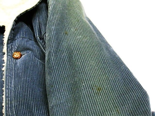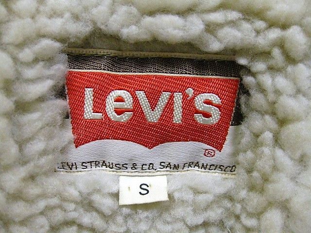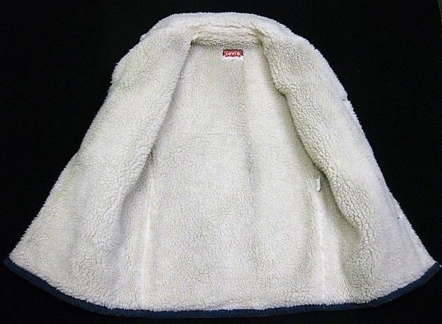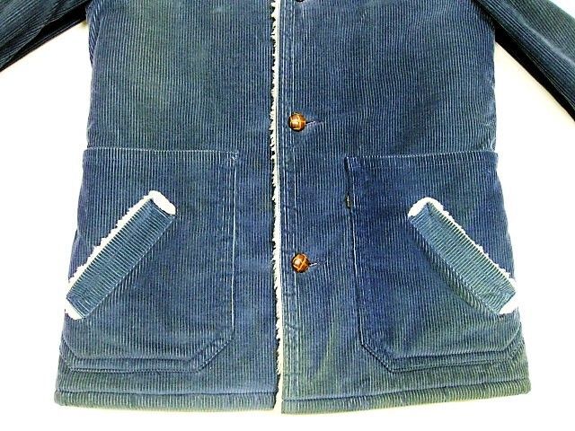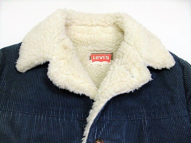 70年代のLevi's 70672-3116 裏ボアコーデュロイジャケットです。サイズ表示はSです。実寸は肩幅49cm 身幅57cm 袖丈63cm 着丈81cmです。全体的に着用感と色褪せが見られます。左袖と腹部付近、ライナーのボアに薄汚れとシミが見られます。襟のボアに汚れが見られます。両サイドともに生地はしっかりした状態です。ダメージはございません。非常にレアなLevi'sの裏ボアコーデュロイ ジャケットです。