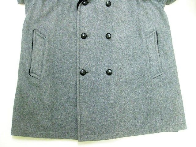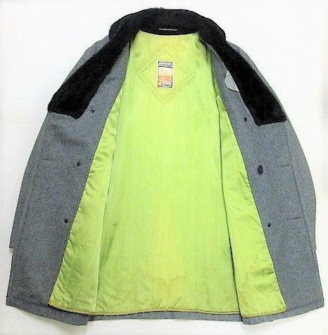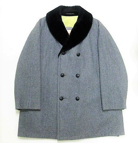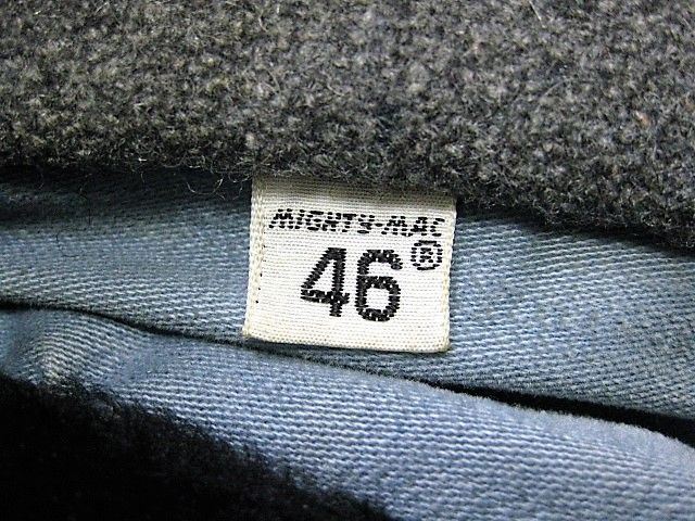 60年代のMIGHTY MAC ウール ギャングコートです。サイズ表示は46です。実寸は肩幅53cm 身幅66cm 袖丈62.5cm 着丈89cmです。アウターは厚手のウール生地 ライナーは中綿が施された厚手のレーヨン生地です。背面はサイドベンツが施されております。ライナーにシミが見られます。着用感は少し見られますが両サイドともに生地はしっかりした状態です。ダメージはございません。襟にムートンが施されたギャングタイプのショートコートです。ゆったりと羽織れる大きめのサイズ46です。
