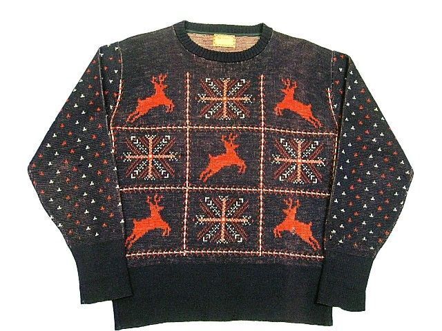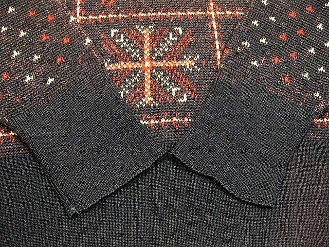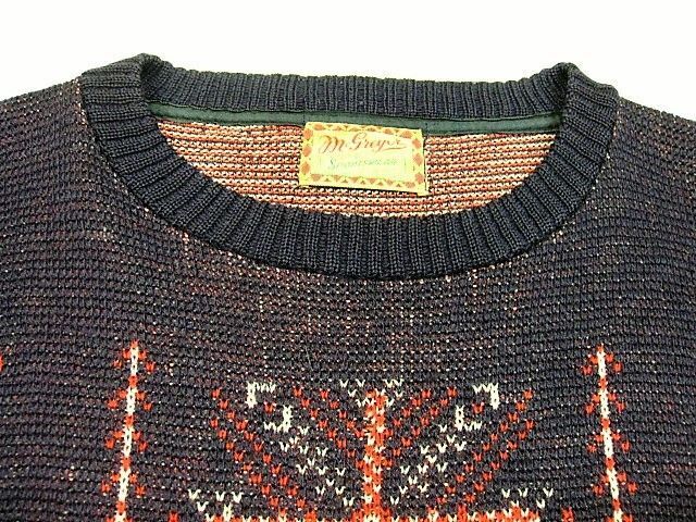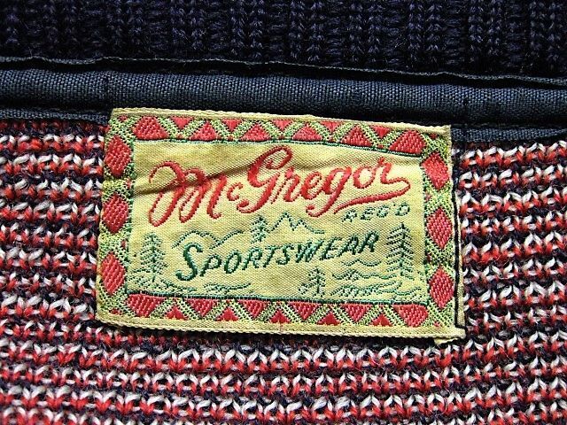 40年代のMcGREGOR ノルディック柄 ウールセーターです。実寸は肩幅49.5cm 身幅55cm 袖丈59cm 着丈61.5cmです。おおよそM位のサイズです。全体的に着用感と色褪せが見られます。右肩付近、腹部、裾リブにダメージが見られます。問題なく着用可能です。冬らしい柄のウールニットです。